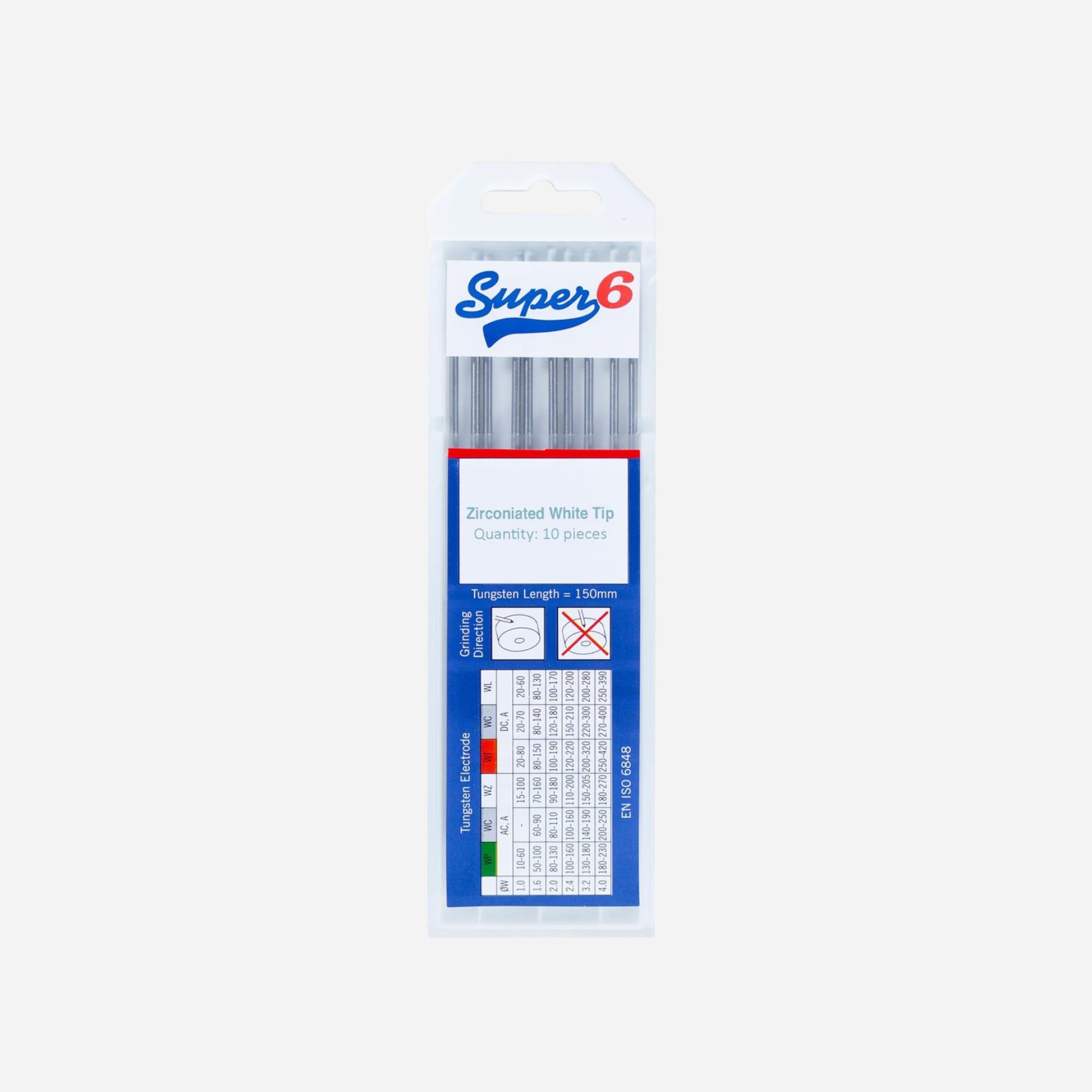 The Super 6 Zirconiated White Tungsten Electrode (0.8mm) is designed for precision and durability in AC TIG welding, particularly on aluminium and magnesium alloys. Known for its excellent arc stability and resistance to contamination, this electrode ensures reliable starts and a smooth, consistent weld finish.