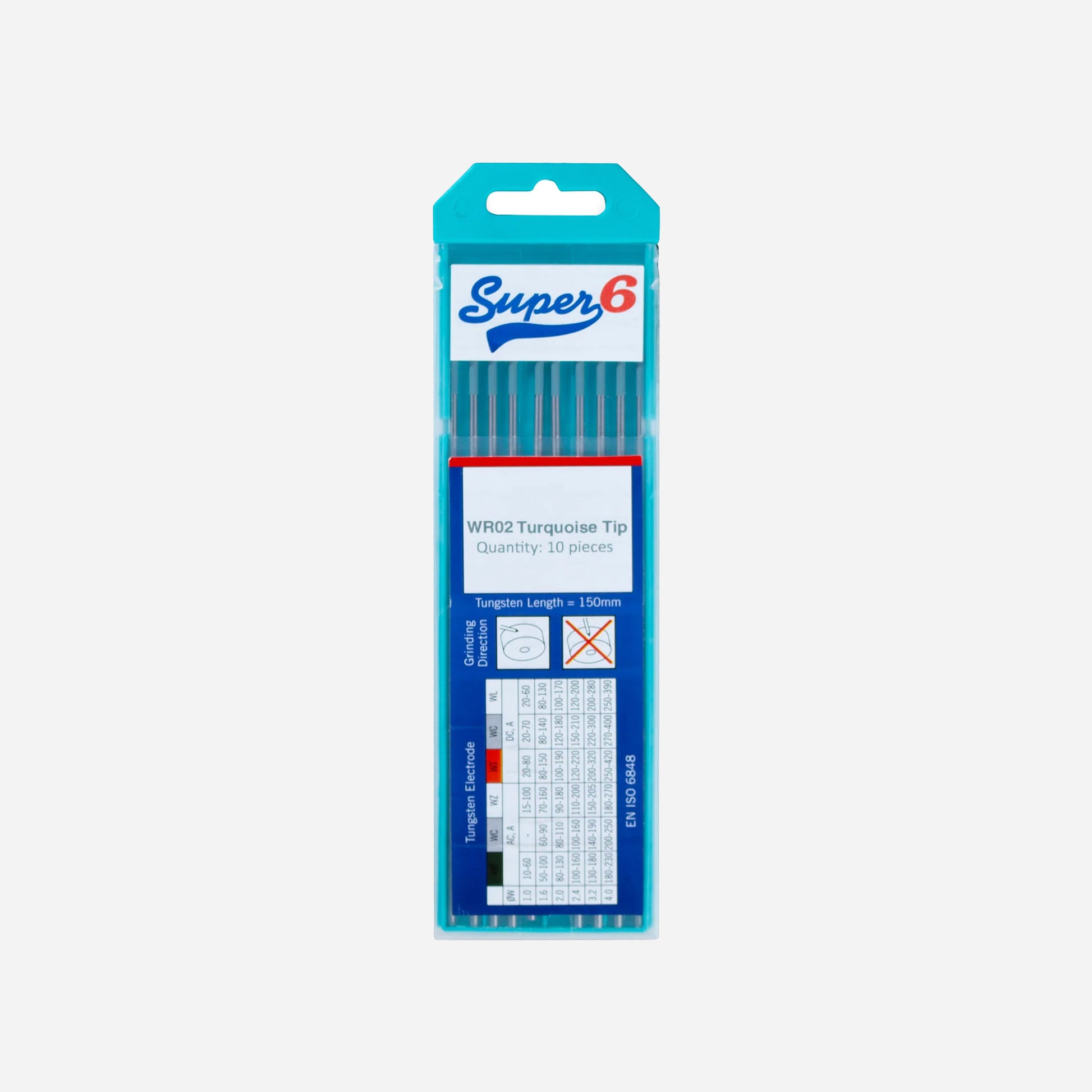 The Super 6 WR02 Turquoise Tungsten Electrode is a premium multi-purpose electrode, suitable for both AC and DC TIG welding. It combines excellent arc starting performance with outstanding stability, making it one of the most versatile and reliable choices for professional welders.